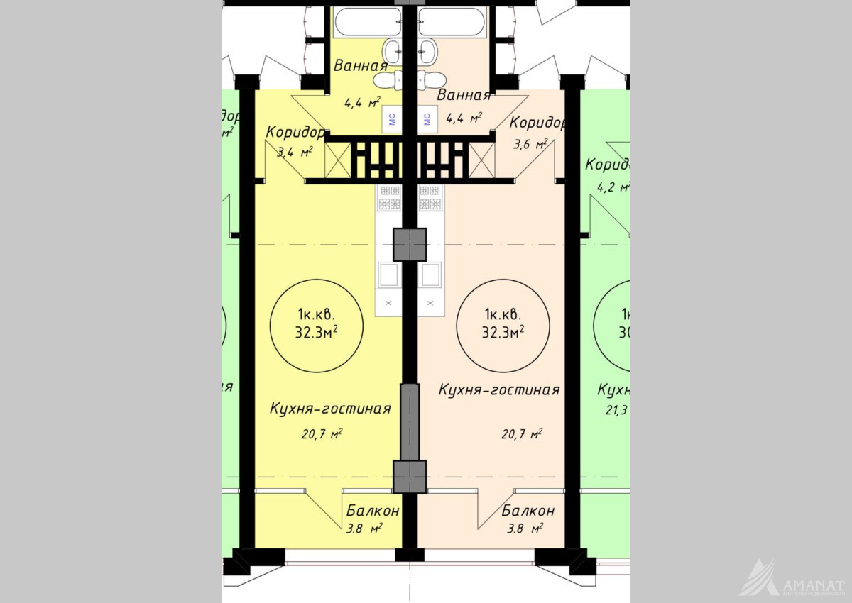 Продаю 1-комнатную студию, площадь 32,3 м²